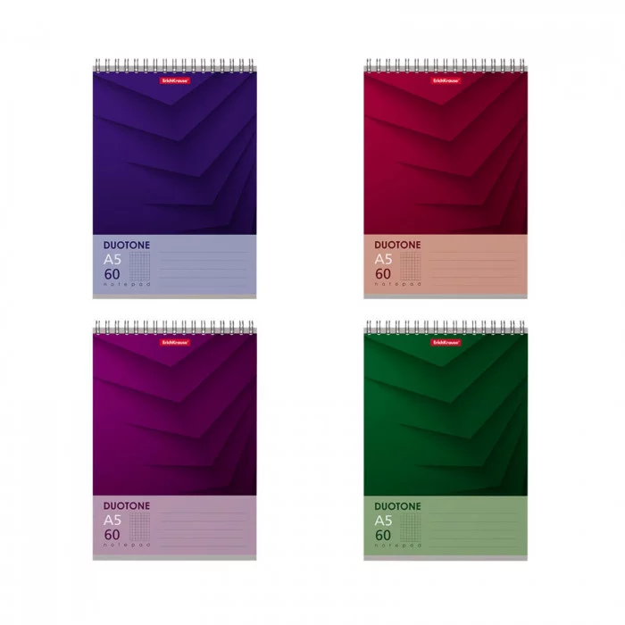 Блокнот на спирали ErichKrause® Duotone Next, А5, 60 листов, клетка MIX-PACK 58423