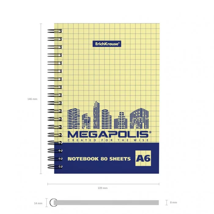 Тетрадь общая на спирали ErichKrause® MEGAPOLIS® Yellow Concept, А6, 80 листов, клетка, желтый внутренний блок 49802
