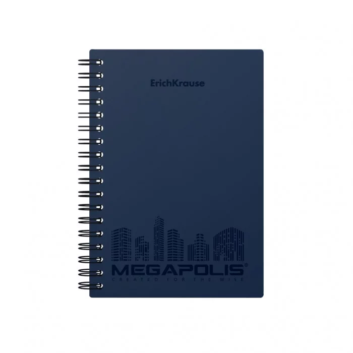 Тетрадь общая с пластиковой обложкой на спирали ErichKrause® MEGAPOLIS®, синий, А6, 80 листов, клетка 45945