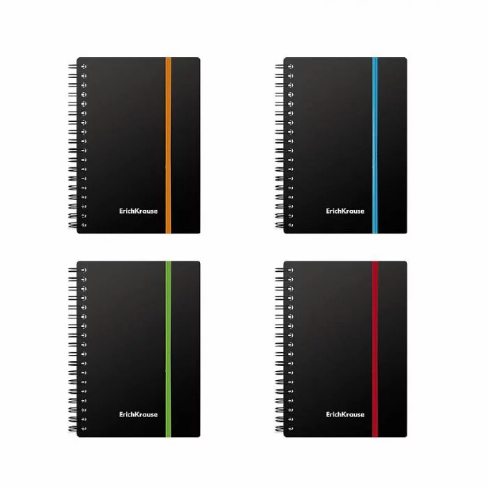 Тетрадь общая с пластиковой обложкой на спирали ErichKrause Accent, ассорти, А6, 80 листов, клетка, резинке 53140