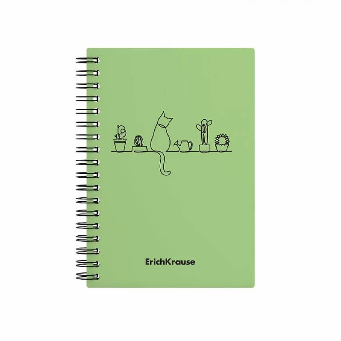 Тетрадь общая с пластиковой обложкой на спирали ErichKrause Powder, Cats, оливковый, А6, 80 листов, клетка 59525