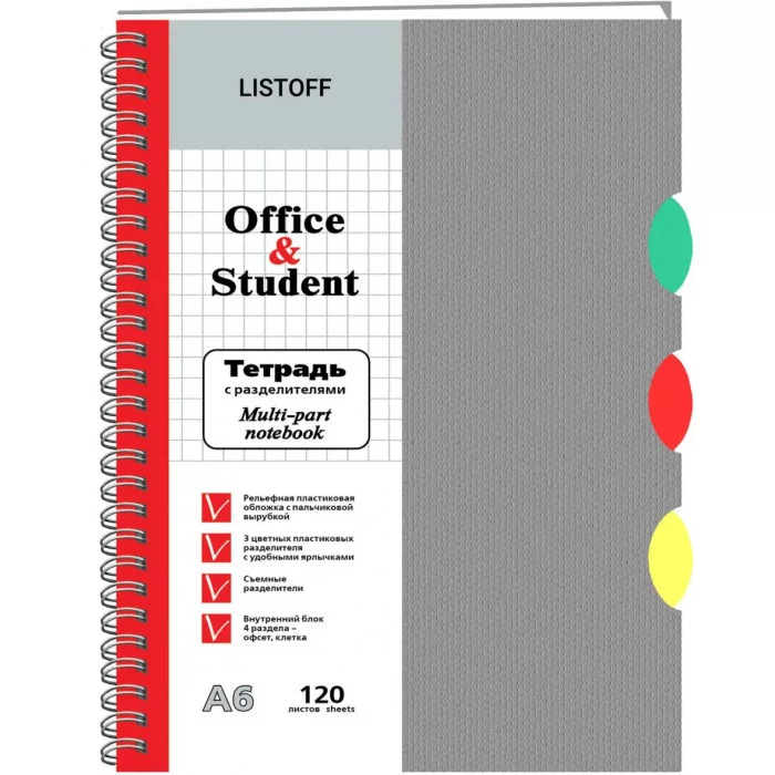 Тетради с пластиковой обложкой и разделителями — удобный инструмент для деловых людей и студентов которым нужно логически разделить записи. Три цветных пластиковых разделителя помогут быстро ориентироваться в текстах, а пальчиковые вырубки на обложке можно пометить и тогда будет ясно, в каком блоке нужно искать нужную информацию.
