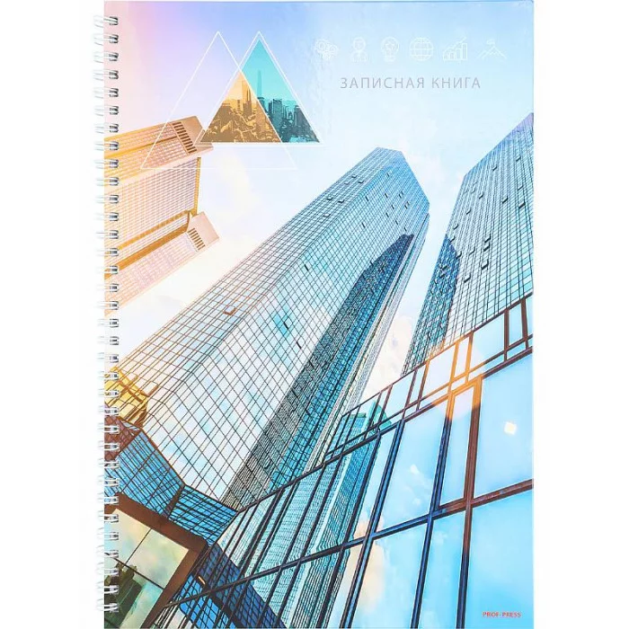 Записная книга на гребне А4 80л. НЕБОСКРЁБЫ ИЗ СТЕКЛА (80-6665) (гребень сбоку, гл.ламинир-ие, 7БЦ) 80-6665