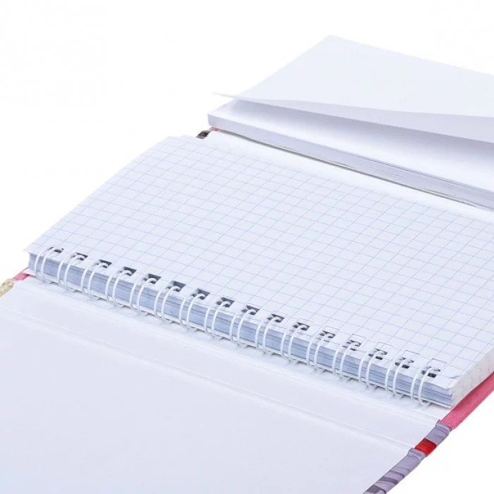 Скрепление: гребень, резинка. Записная книжка выполнена на закрытом гребне и имеет два внутренних блока: 80 листов на гребне для ведения постоянных записей и 50 листов на отрывной склейке для оперативных заметок. Резинка надежно защищает от случайного раскрытия.