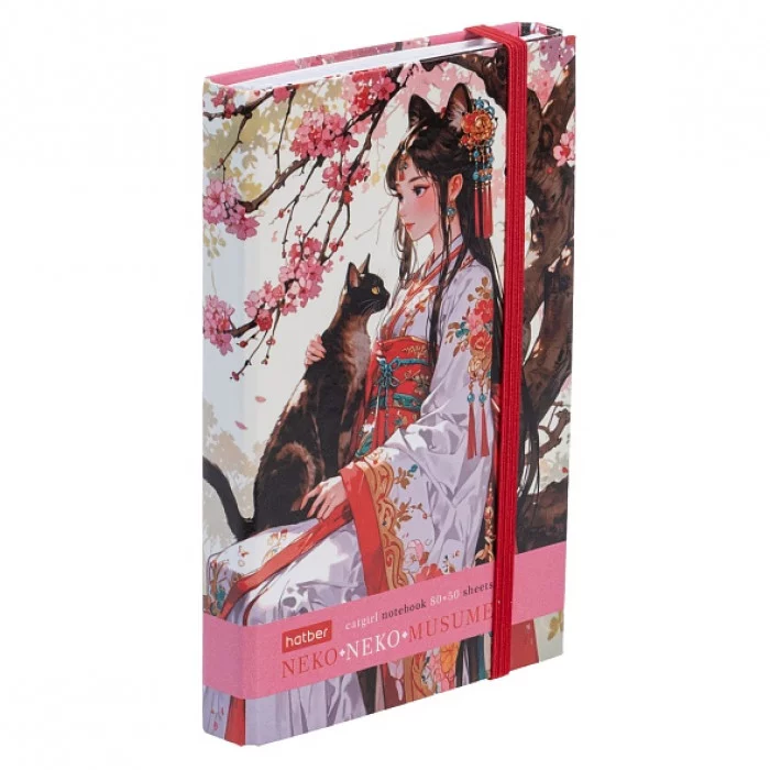 Записная книжка 80-50л А6ф с твердой обложкой клапаном на резинке гребне-Neko-Neko- 80-50ЗКт6Вгр_32858