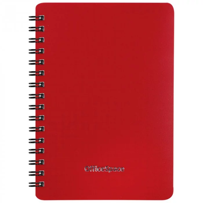 Записная книжка А6 60л. на гребне OfficeSpace Base красная пластиковая обложка 310424