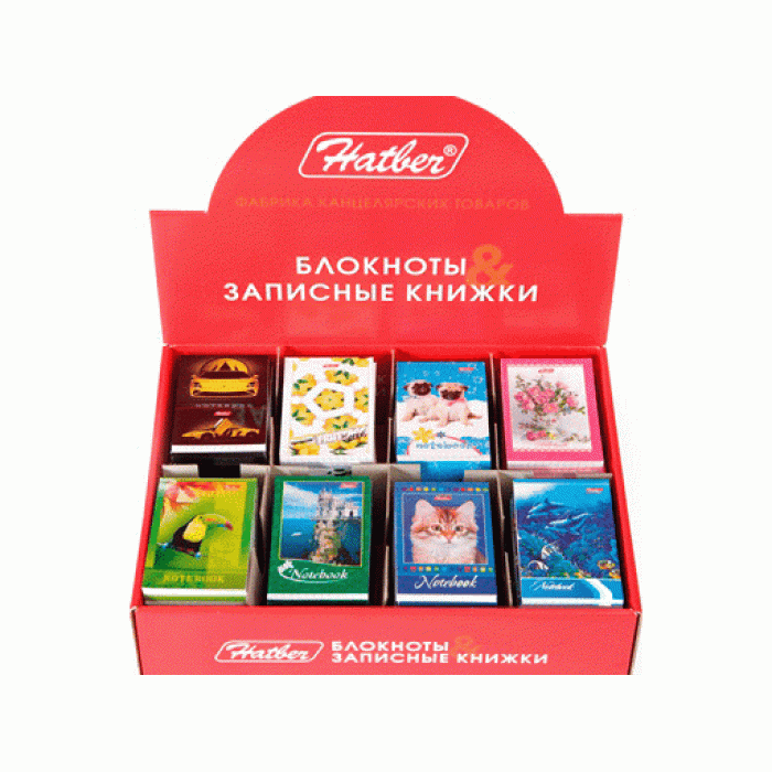 Блокнот 48л А7ф клетка на клею Ассорти- 65х100мм 3-х цв. блок