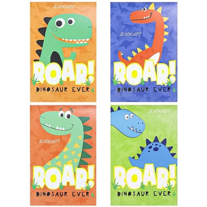 Блокнот А7 16л. на скрепке ЗАБАВНЫЕ ДИНОЗАВРЫ Б16-0524
