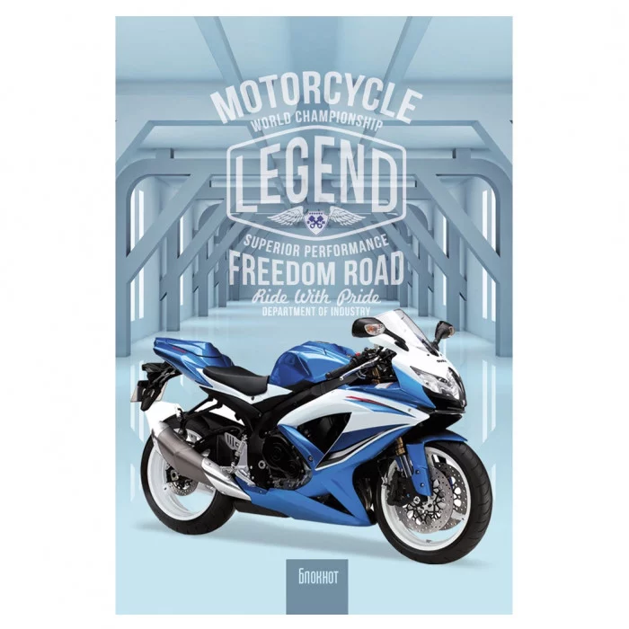 Блокнот А7, скрепка, Проф-Пресс, ламинация, 16 л. Мотолегенла Б16-5256
