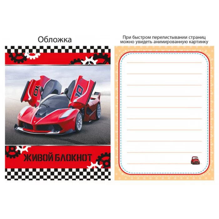 Блокнот в мягкой обложке на скрепке А7 Живой блокнот СпортКар Полипринт 27105
