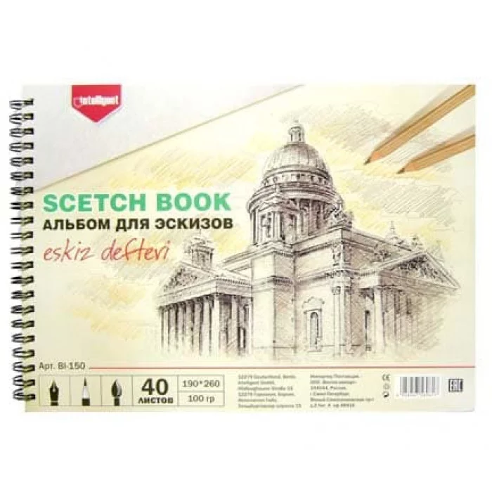 Альбом для эскизов 190*260мм 100гр. 40 л. INTELLIGENT гребень, горизонтальный BI-150 на подложке, в инд упаковке (5/60) 304204