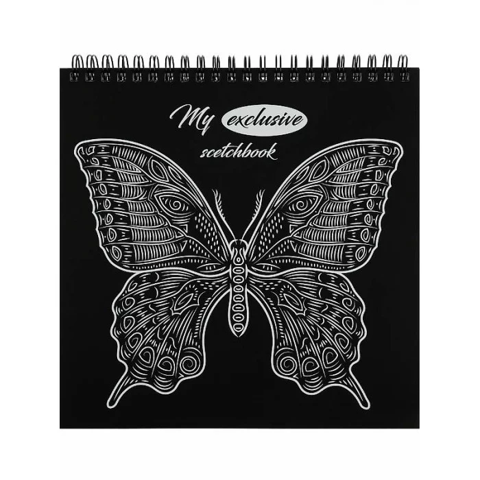 My exclusive scetchbook с обложкой-раскраской БАБОЧКА(120-8338)черно-бел.блок120г,194х194,48л,греб. 120-8338