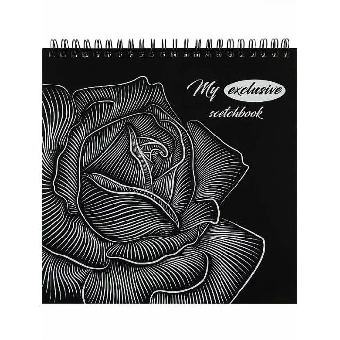 My exclusive scetchbook с обложкой-раскраской РОЗА(120-8334),черно-бел.блок120г,194х194,48л,греб. 120-8334