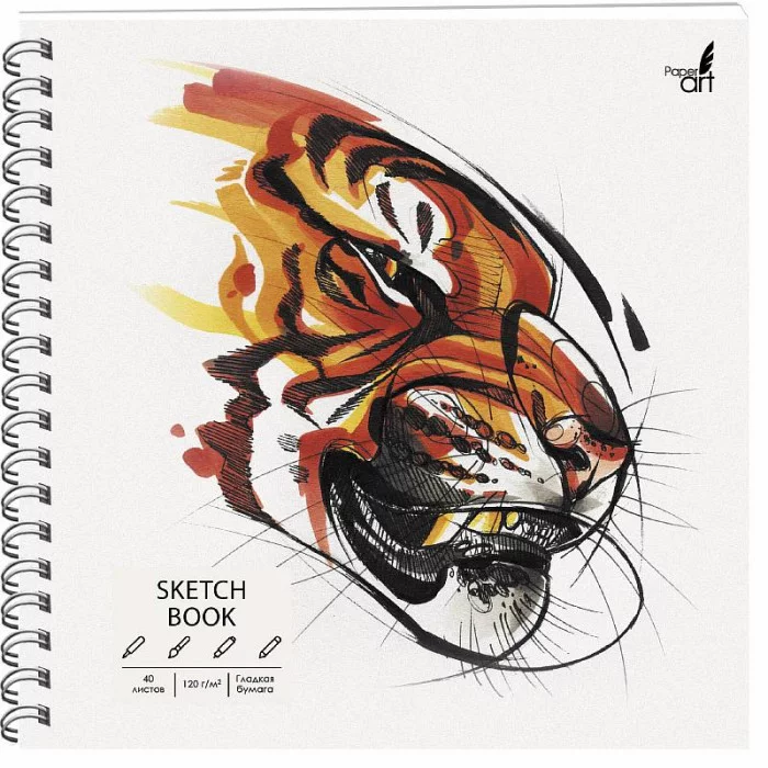 Альбом для рисования 190х190, 40л. Евроспираль. Твердая обл., твин-лак. Бум. оф.120г/м2.. "Tiger"