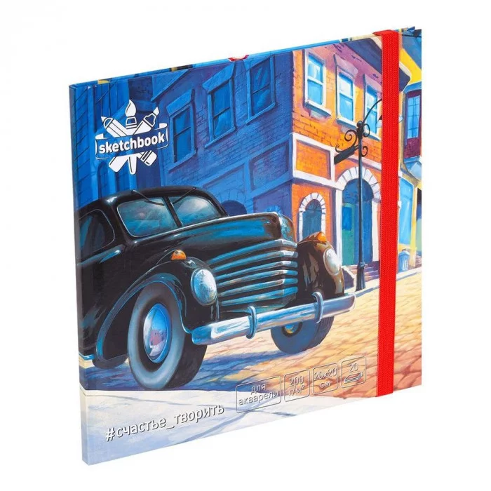 Скетчбук 200х200 Акварельный Олдскул авто (7БЦ, мат лам+твин лак, 20л, 200г, на резинке) С20-4083