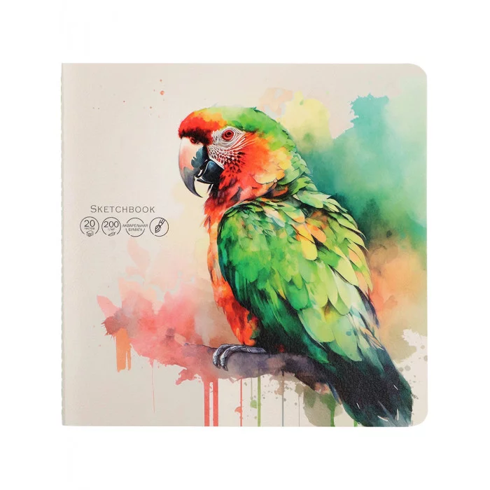 Скетчбук 20л. КРАСОЧНЫЕ ПЕРЬЯ (20-0308)сшивка, каландр холст, для аквар 200гм2, круг.угл 190х190 20-0308