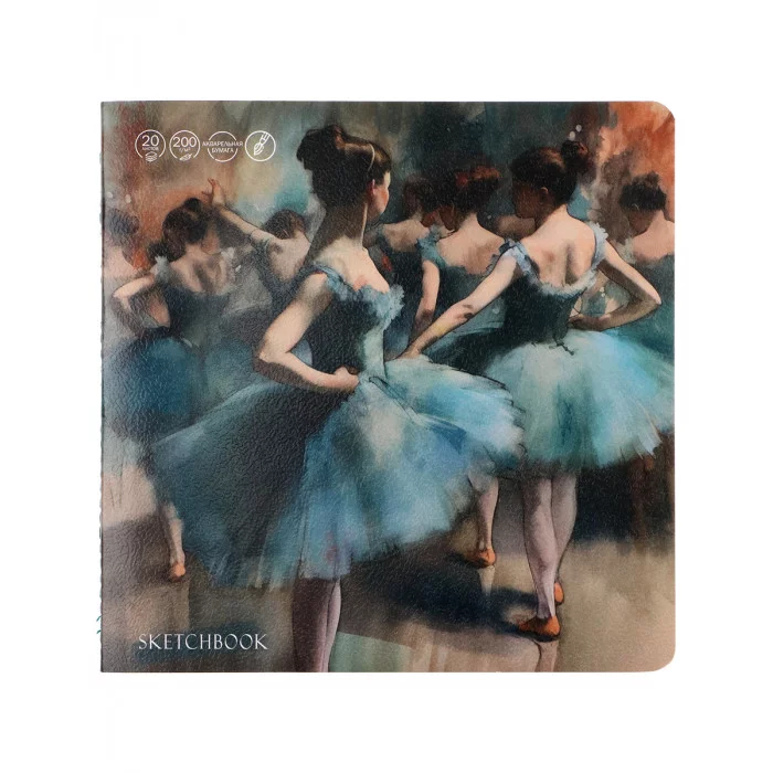Скетчбук 20л. ВЫСТУПЛЕНИЕ БАЛЕРИН (20-0306)сшивка, каландр холст, для аквар 200гм2, круг.угл 190х190 20-0306