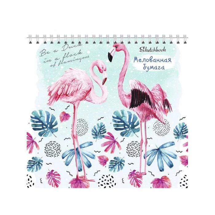 Скетчбук 40л. ФЛАМИНГОИ ЛИСТЬЯ (40-5659) на гребне, блок- мелов.бум.150г/м2, жест.подл, 190х190