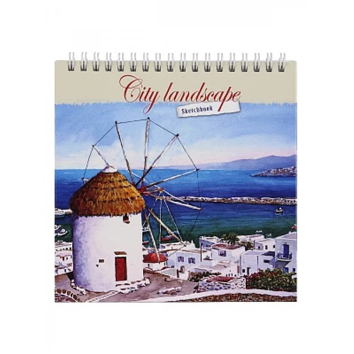 Скетчбук 40л. МЕЛЬНИЦА НАД МОРЕМ (С40-1724) 7БЦ, на гребне, глянц. ламинация 165х165мм С40-1724