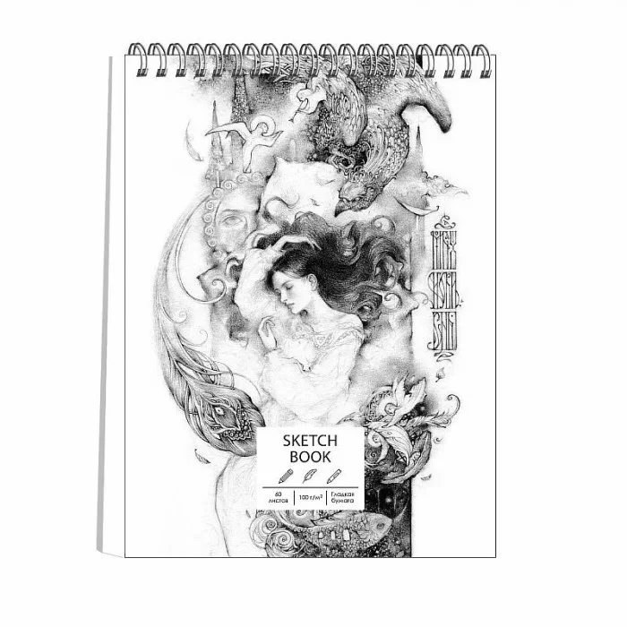Скетчбук 7БЦ А4 210х286мм, 60л евроспираль (по короткой стороне) Обл.-матовая ламинация. Блок: офсет - 100 г/м. "SKETCHBOOK. Малахитовые сны (Эксклюзив)"