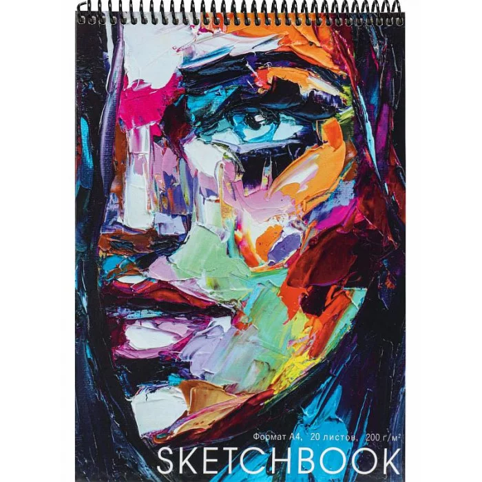 Скетчбук А4 20л., "Портрет девушки", 200г/м2, Миленд, спираль, 7БЦ, глянц. ламинация, жёсткая подложка, акварельная бумага