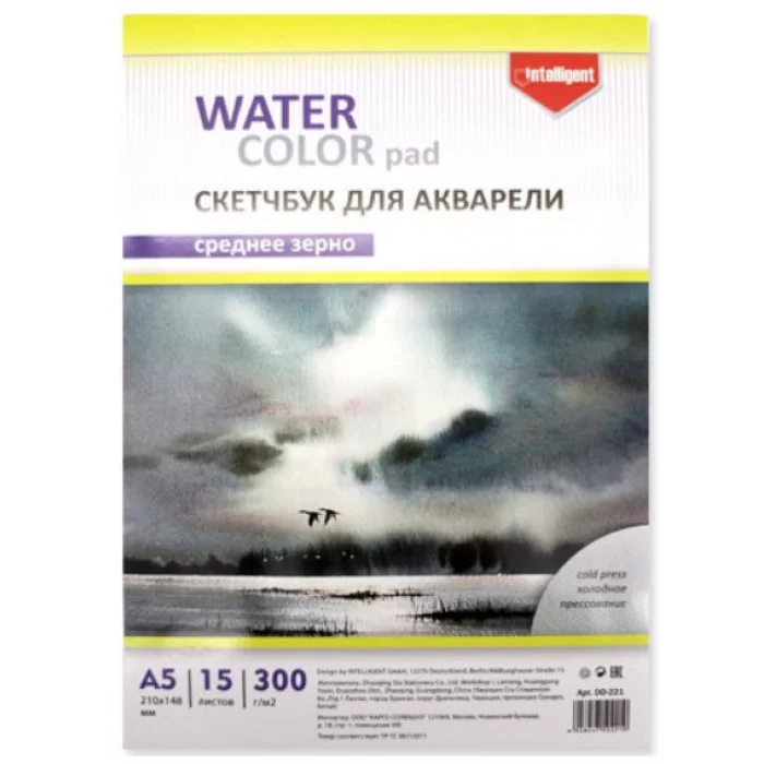 Скетчбук А5 15л. DD-221 INTELLIGENT Акварельная бумага, среднезернистая, 300гр/м, 210х148мм, склейка, в ПВХ-пакете 329709
