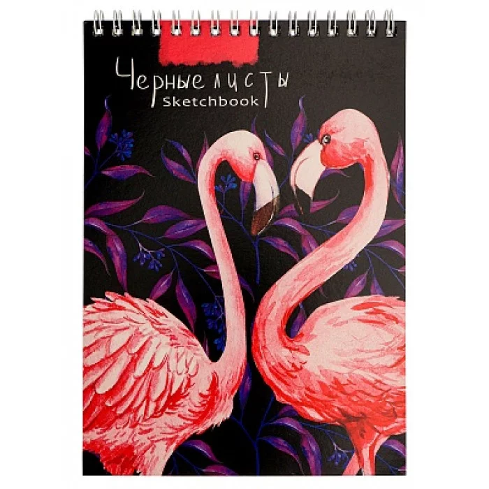 Скетчбук А5, 20л. КОНТРАСТНЫЕ ФЛАМИНГО (20-5665) гребень, обл.мелов.картон, черный блок, жестк.подл 20,5665