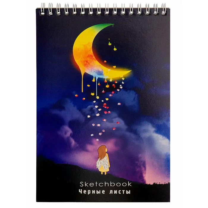 Скетчбук А5, 20л. ЛУННЫЕ ПОДАРКИ (20-5661) гребень, обл.мелов.картон, черный блок, жестк.подл 20-5661