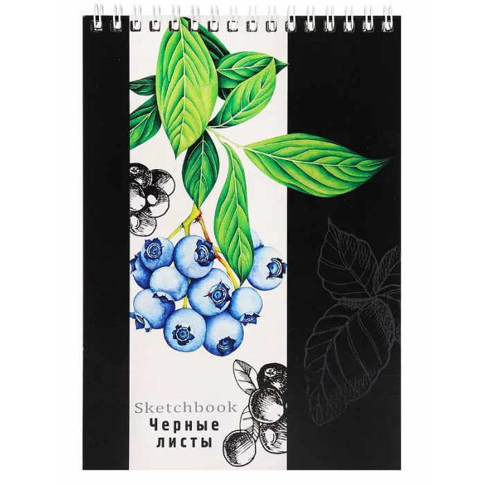 Скетчбук А5, 20л. ЯГОДНАЯ ИЛЛЮСТРАЦИЯ (20-5666) гребень, обл.мелов.картон, черный блок, жестк.подл