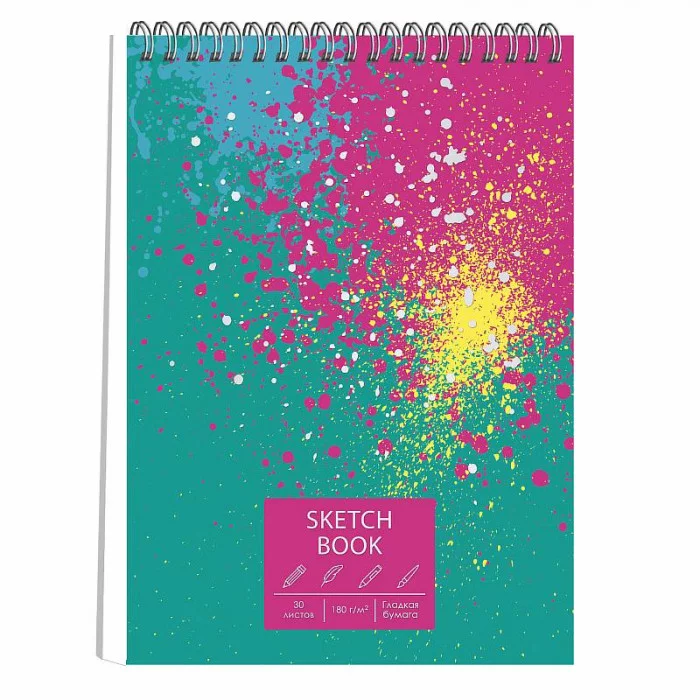 Скетчбук А5+ (160х240), 30л. Евроспираль по короткой стороне. Тв. обл, глянц. лам., тиснение фольгой серебро. Бум.180 г/м2, перфорация. "Холли"