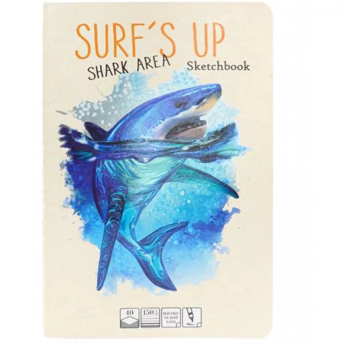 Скетчбук А5+, 40л. ГРОЗНАЯ АКУЛА (40-5545) тетрадная сшивка, твин-лак, холодная фольга 40-5545