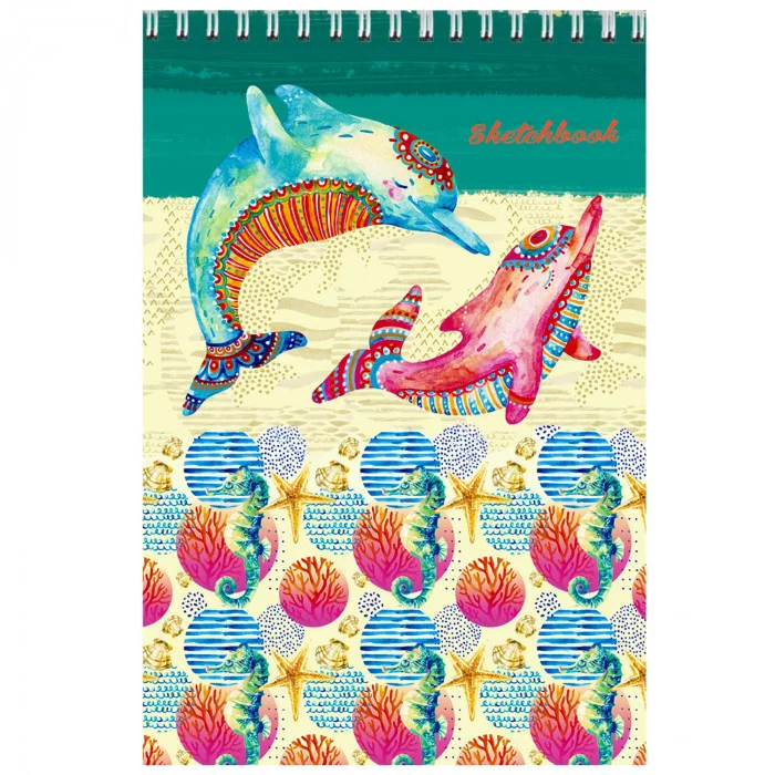 Скетчбук А5 50л., Проф-Пресс, на спирали, жесткая подложка, блок крафт "Морские обитатели" 50-6006