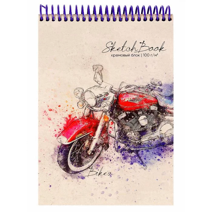 Скетчбук А5, 64л, РЕТРОМОТОЦИКЛ (64-6856), на спирали, жесткая подложка, обл. - целлюлозн. картон 64-6856