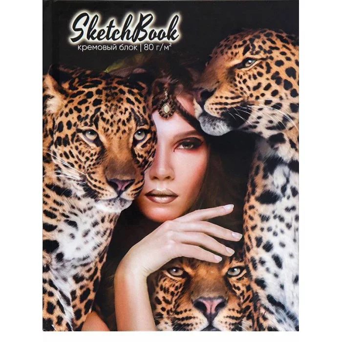 Скетчбук А5, 80л, ДЕВУШКА И ЛЕОПАРДЫ (80-2357), книжн., 7БЦ, глянц. лам. 80, 2357