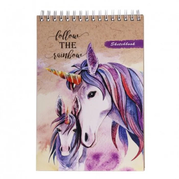 Скетчбук А5 80л., "Пара Единорогов", 100 г/м2, Проф-Пресс, спираль, ламинация, жёсткая подложка, блок крафт 50-6009