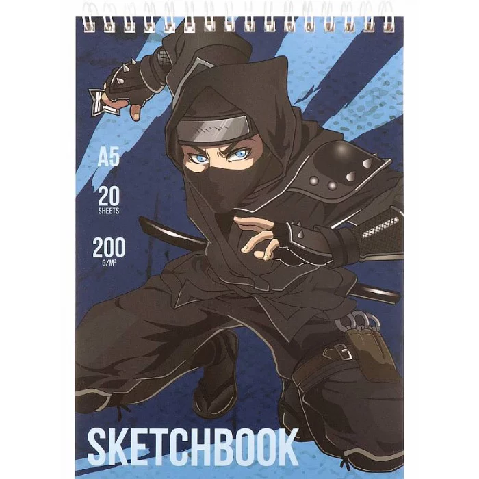 Скетчбук А5 20л., "Аниме", 200г/м2, Миленд, гребень сверху, жесткая подложка, мягкая обл., мат. лам., акварельная бумага
