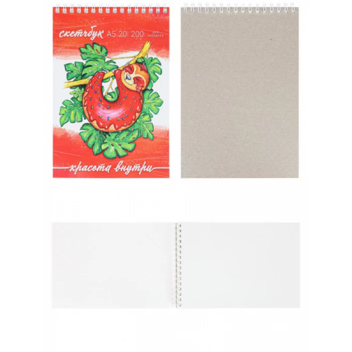 Скетчбук А5 Акварельный Ленивец (мяг. обл, мат. лам. гребень сверху, жест. подл. 20л, 200г) С20-3485