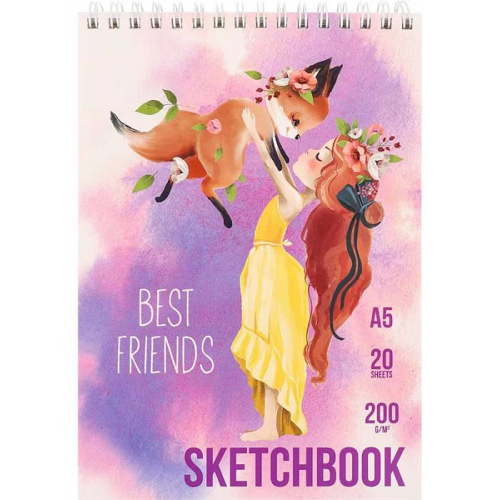Скетчбук А5 20л., "Лиса", 200г/м2, Миленд, гребень, мелованная обложка, матовая ламинация, жёсткая подложка,