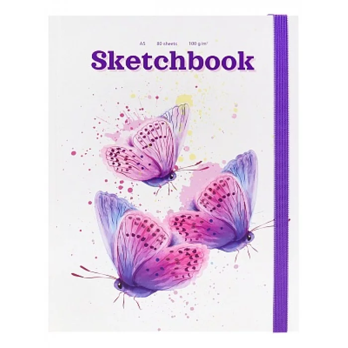 Скетчбук А5 Бабочки (7БЦ, мат лам., 80 л, на резинке, 100г ) С80-3062 462-0-129-73062-4