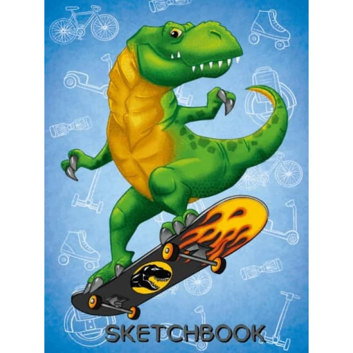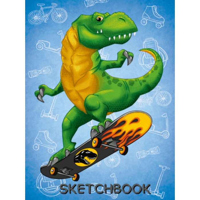 СКЕТЧБУК А5. ДИНОЗАВР НА СКЕЙТЕ (выб.лак) 461-0-144-87374-1