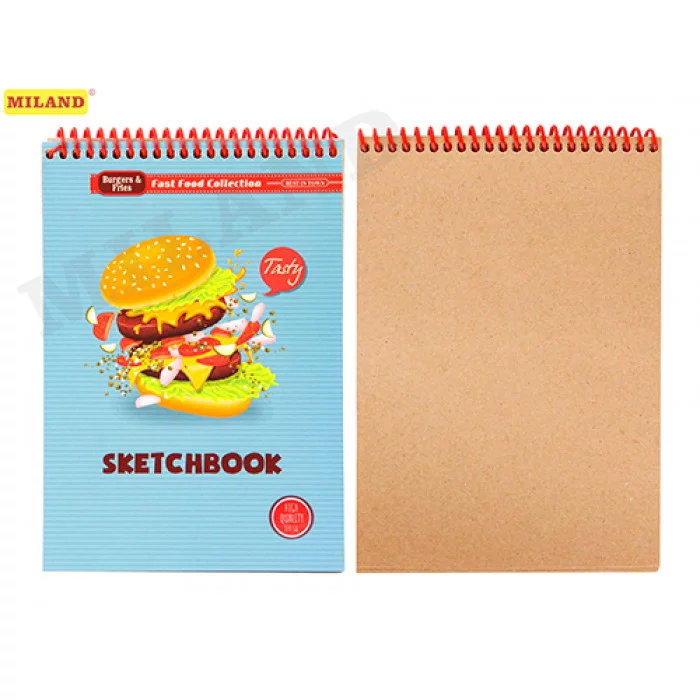 Скетчбук А5 "Фастфуд" (жест подложка, на спирали, 50л, крафт блок) 50-1687
