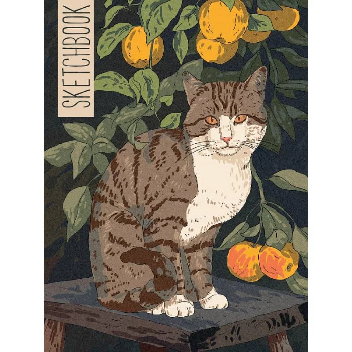 СКЕТЧБУК А5. КОШКА НА ТАБУРЕТКЕ (выб.лак, хаки резинка) 467-0-159-11651-6