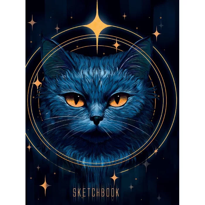 СКЕТЧБУК А5. КОСМИЧЕСКИЙ КОТ (выб.лак,чёрная резинка) 467-0-159-17928-3
