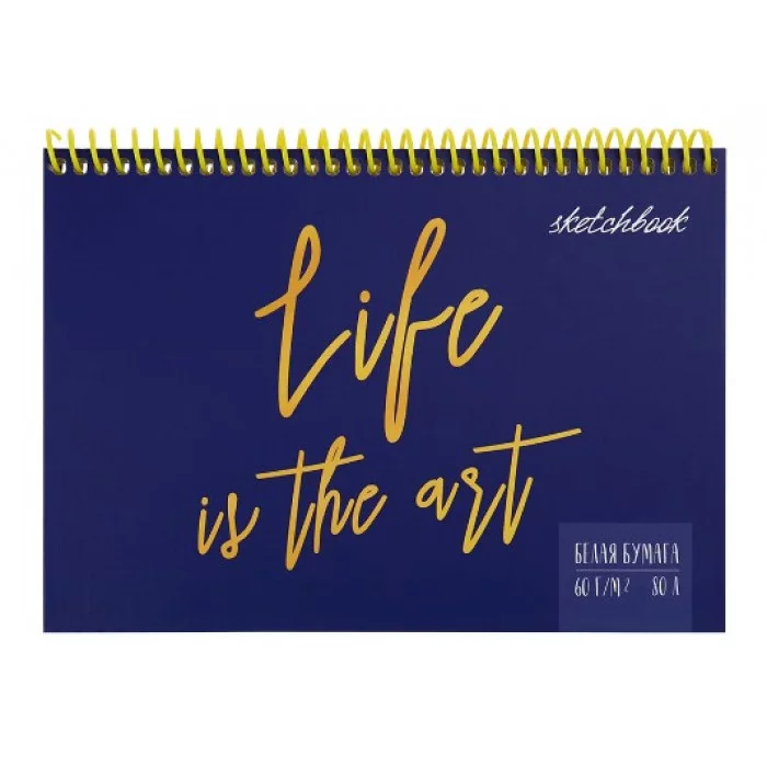 Скетчбук А5 Life is the art (7БЦ, спираль, мат лам+лён, 80л, 60г, офсет) С80-2712