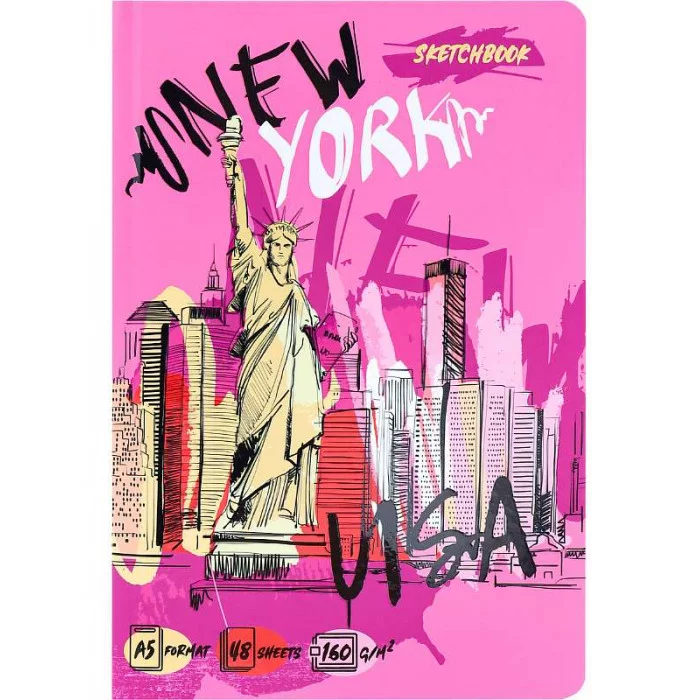 Скетчбук А5 48л., "Нью-Йорк", 160 г/м2, Миленд, 7БЦ, soft touch, выб. лак, офсет