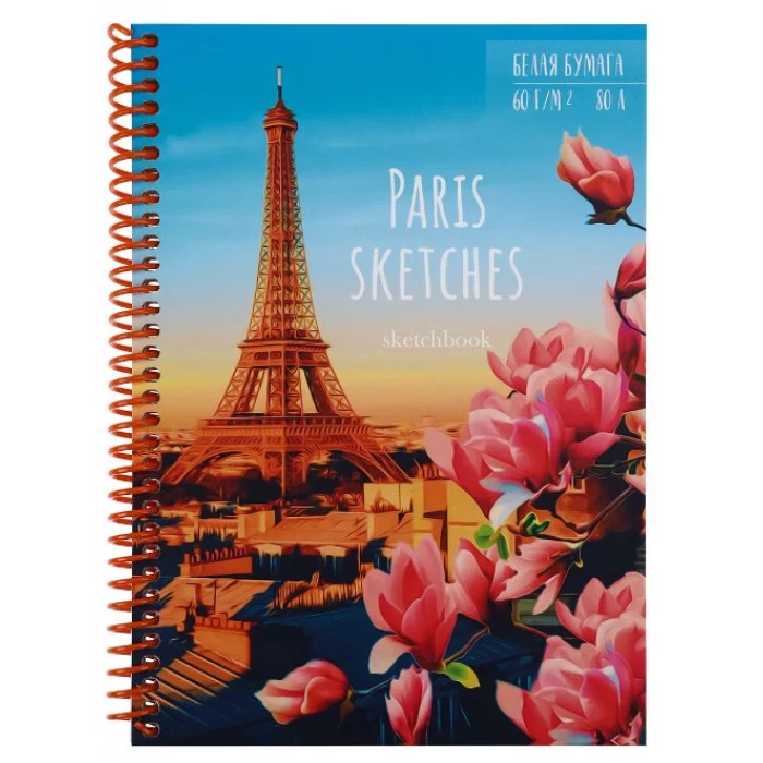 Скетчбук А5 Париж (7БЦ, спираль, мат лам+лён, 80л, 60г, офсет) С80-2713