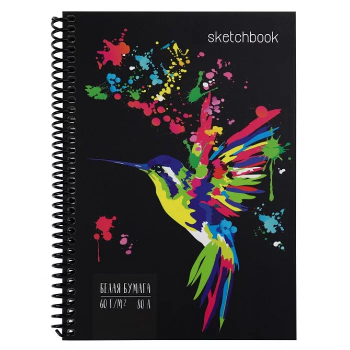 Скетчбук А5 Птичка (7БЦ, спираль, мат лам+лён, 80л, 60г, офсет) С80-2714