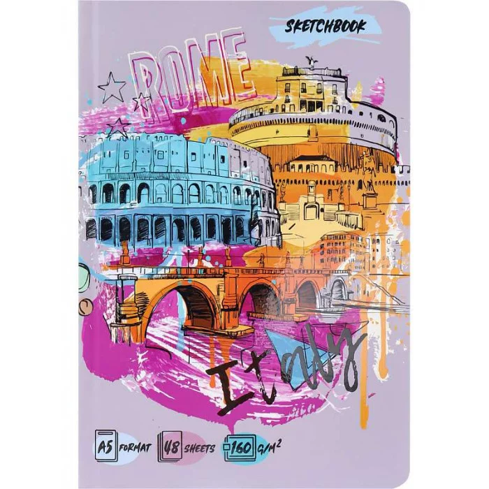 Скетчбук А5 Рим (7БЦ, soft touch+выб лак, 48л, 160г, белая бумага) С48-3787