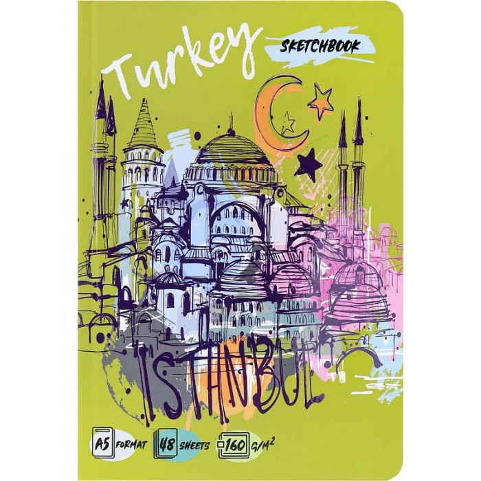 Скетчбук А5 48л., "Стамбул", 160 г/м2, Миленд, 7БЦ, soft touch, выб. лак, блок офсет