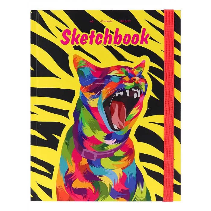 Скетчбук А5 40л., "Яркий кот" 100г/м2, Миленд, 7БЦ, матовая ламинация, резинка, блок офсет